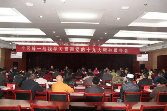 朱洁平指出,党的十九大开启了中华民族伟大复兴的新时代和新征程,对全区统战各项工作将起到重要的引领作用。朱洁平号召全区统一战线,要以此次学习贯彻报告会为起点,把学习贯彻党的十九大精神作为当前和今后一个时期的首要政治任务抓紧抓好抓实。